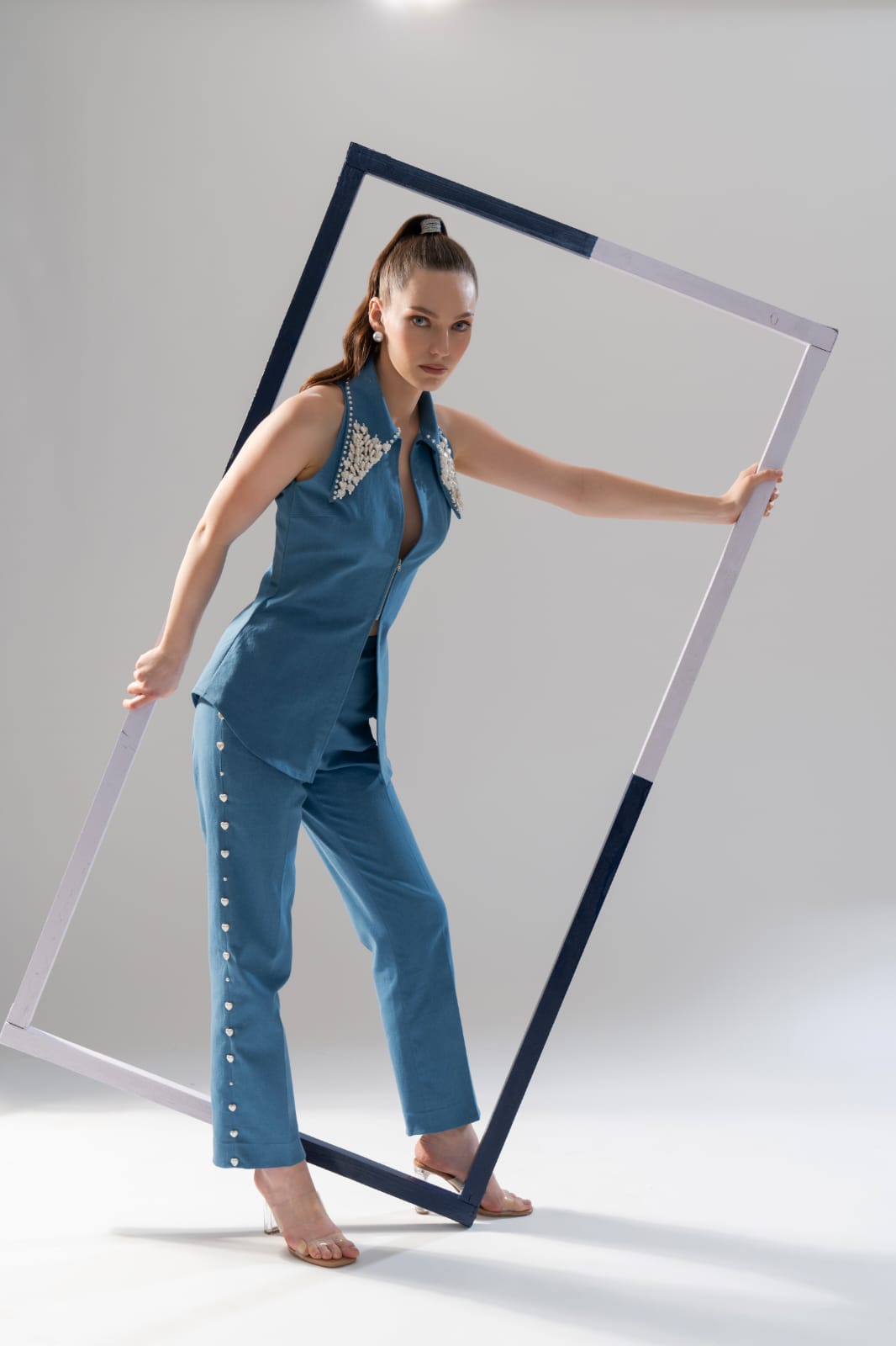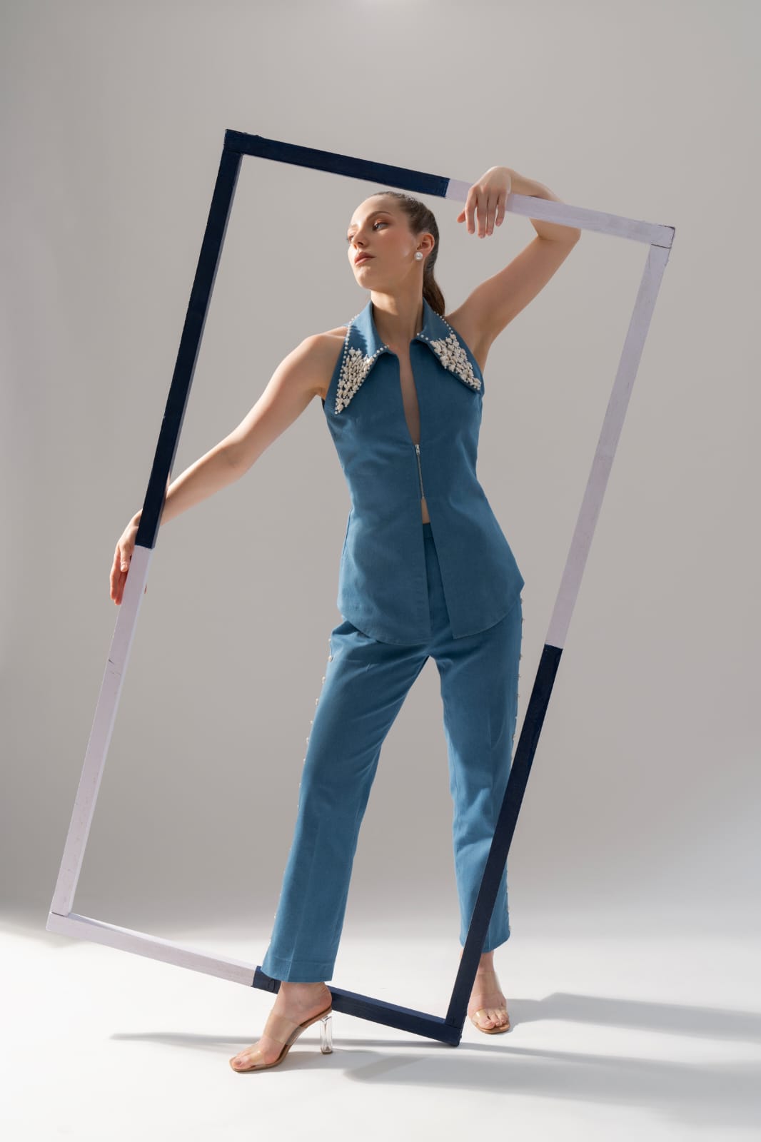 The pearl detailing adds a touch of classic elegance, making this set a timeless addition to your wardrobe. Enjoy the perfect blend of style and comfort with a fabric that feels as luxurious as it looks
